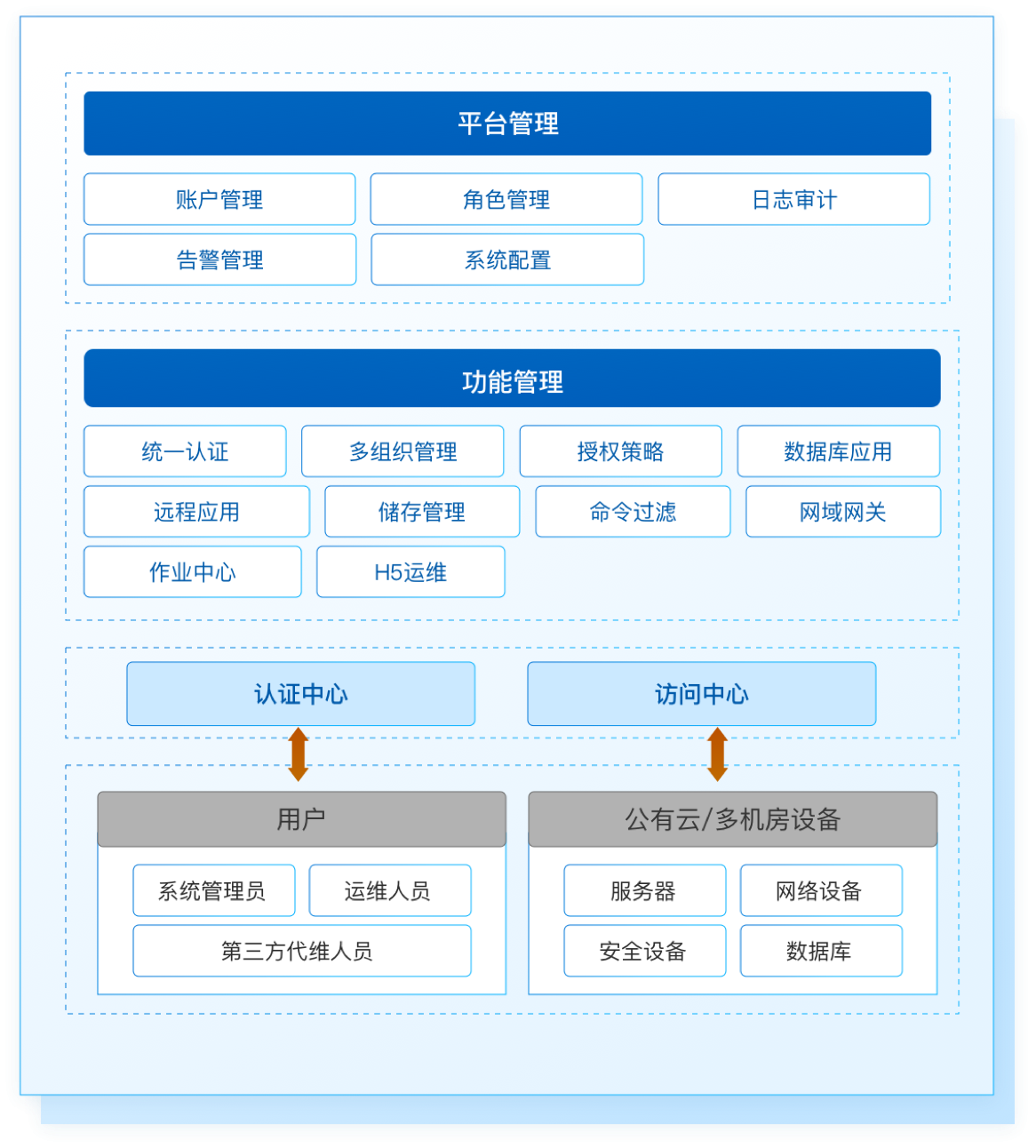 云翼运维审计系统通过统一运维入口、统一身份认证、统一资源管理、统一权限管理和统一过程审计等一系列规范化技术手段实现对运维人员的操作进行控制和审计, 规范操作流程, 严控人为风险,确保运维操作合规性,同时降低账号、密码管理难度, 提升用户IT管理的安全和效益。